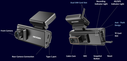 HikVision 2ch FHD 1080p dashcam 4G with GPS & Mic inc ADAS - AE-DC2022-V200